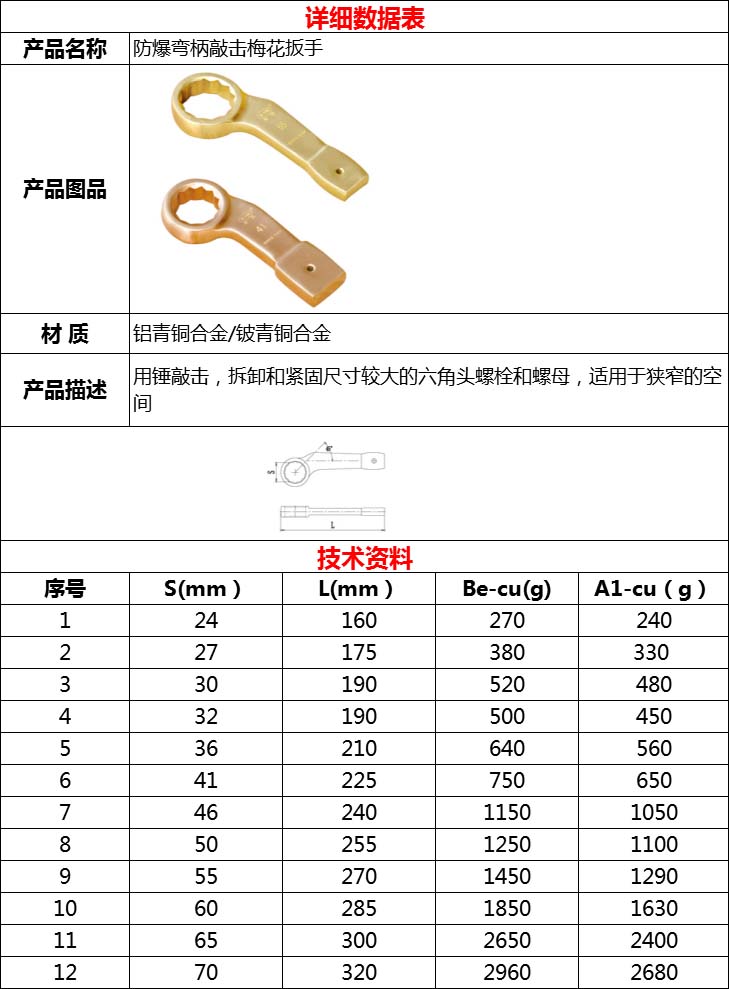 中防牌防爆彎柄敲擊梅花扳手、無火花