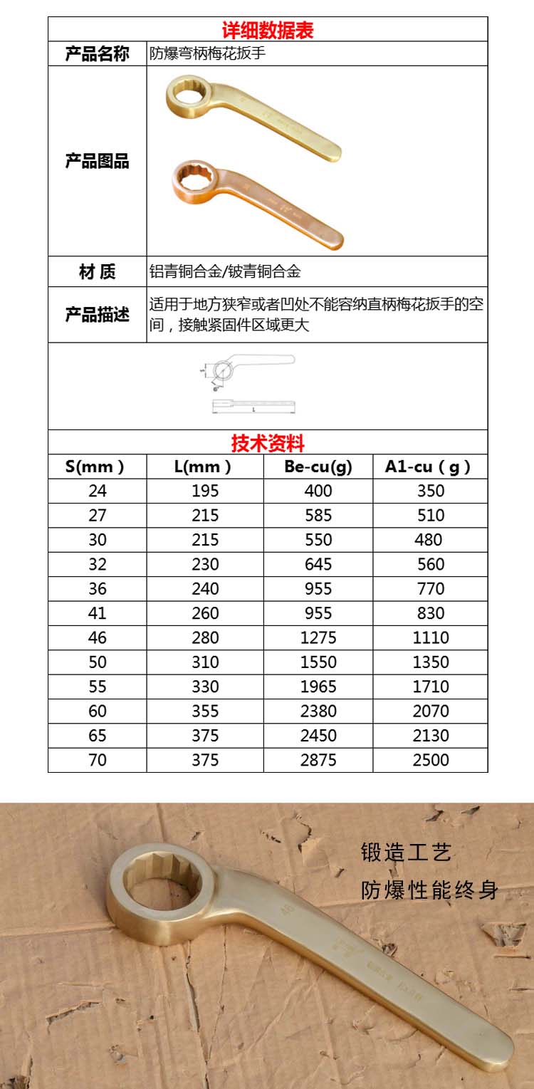中防牌防爆彎柄敲擊梅花扳手、無火花