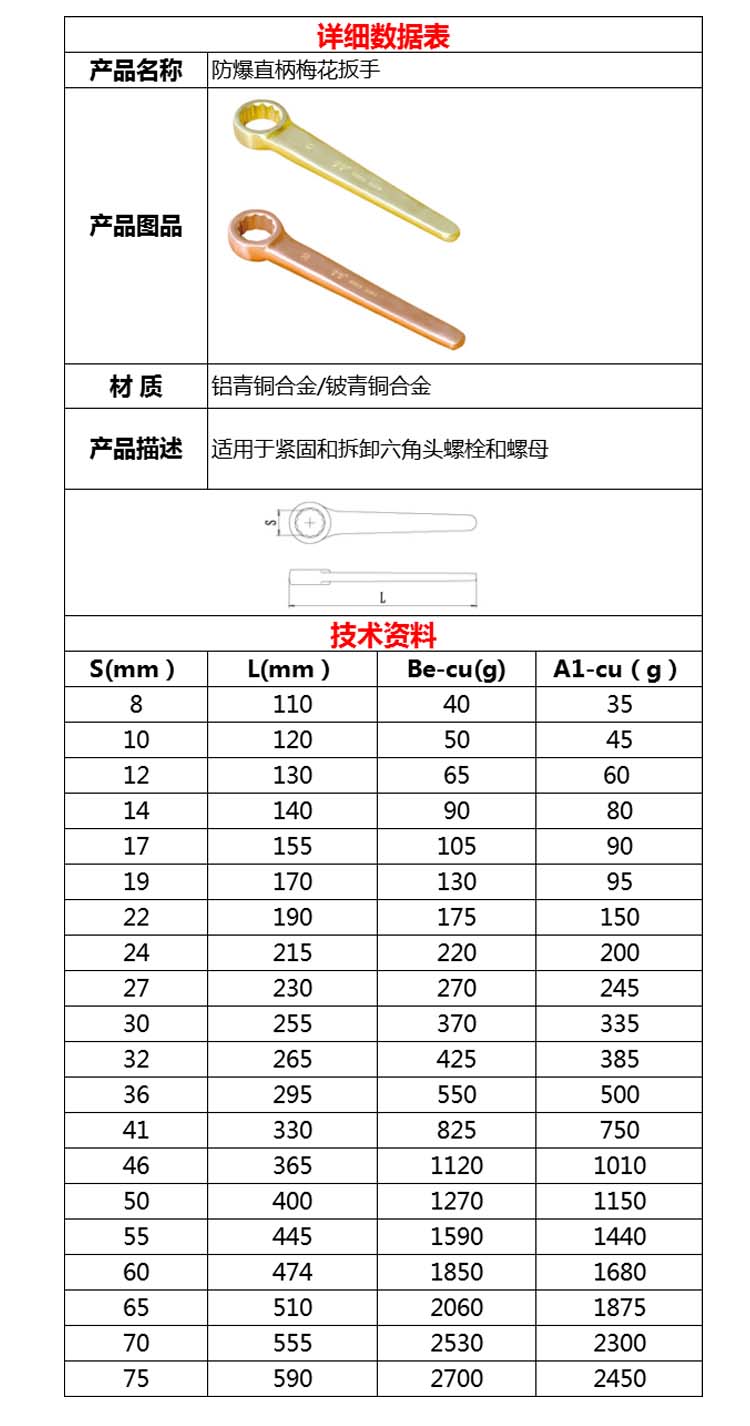 中防牌防爆重型直柄凸型敲擊梅花扳手