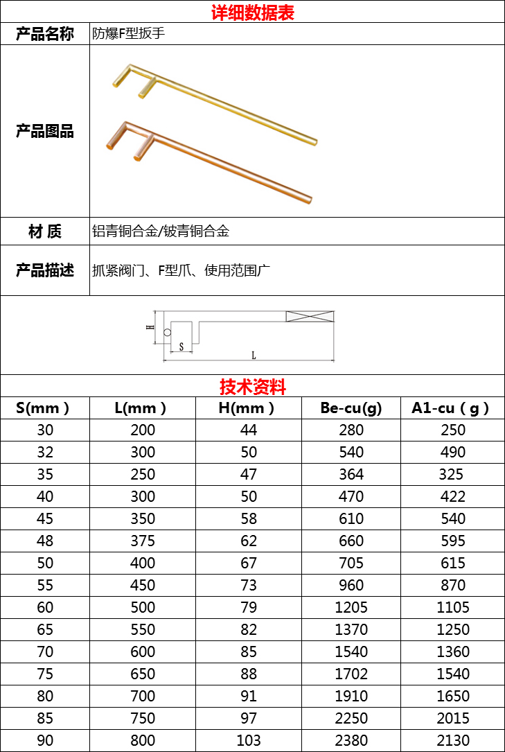 中防牌防爆F型扳手、無火花F爪閥門扳手